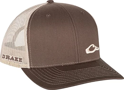 A classic trucker cap style with the Drake quality and fit you’ve come to expect, the Enid Mesh Back Cap features a unique styling of the Drake head logo in the lower corner of the front panel.