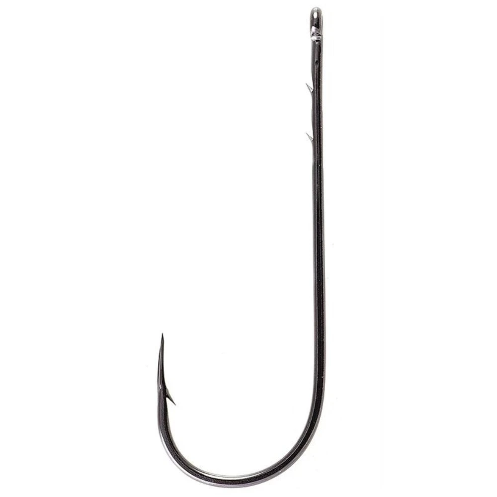 Straight Shank worm hooks, ideal for split-shotting plastic worms for wary bass. Features include a round bend, Cutting Point™, black chrome finish and baitholder slices on the inside of the straight shank.