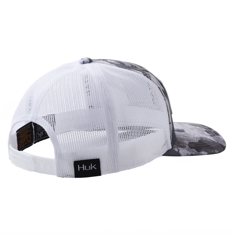 This mid-profile trucker features a 3D embroidery Huk logo on fabric patch and our exclusive Refraction camo. It features a dark gray under visor to fight glare and a comfortable moisture-wicking sweatband.