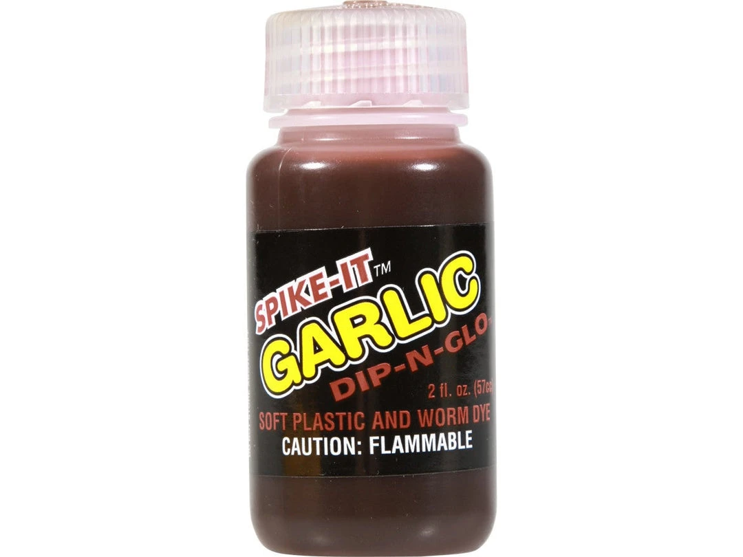 Spike-It Dip-N-Glo Plastic Worm Dyes are specially designed for dipping plastics such as worms, grubs, and even skirts to produce immediate, permanent color changes. Scented varieties deeply penetrate the lure to produce a long-lasting scent.