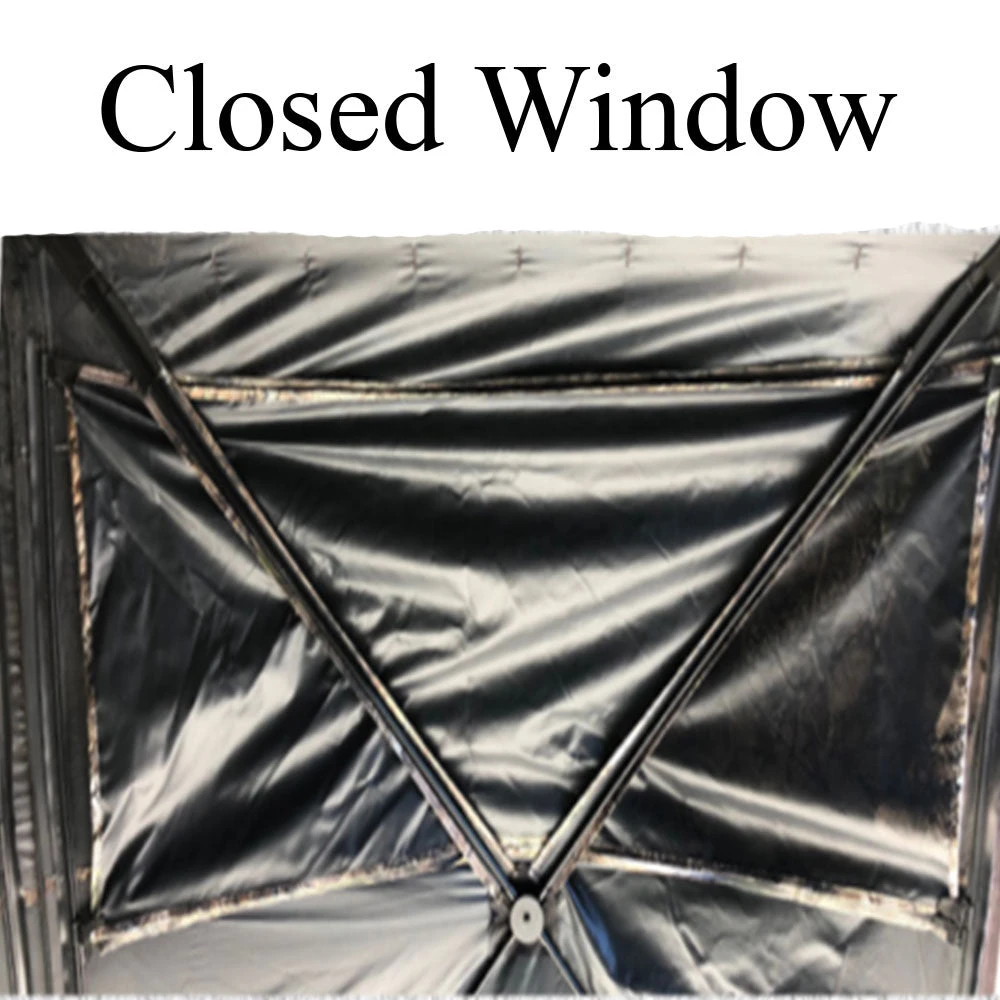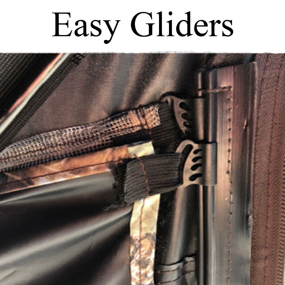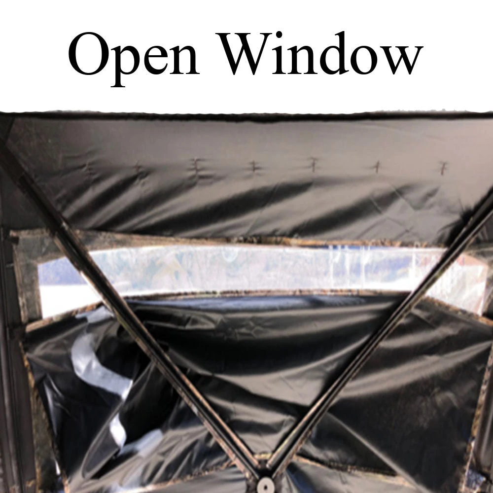 Reduce your chance of detection with this 3 person hexagon shaped hunting blind. Get a view in any direction with the easy- glide adjustable windows. The Lodge Hunting Blind has a convenient garage door opening, it sets up and collapses in seconds. The Lodge Blind is weather resistant with 150D black coated fabric seal. Comes with carrying bag, stakes, and tie downs.
