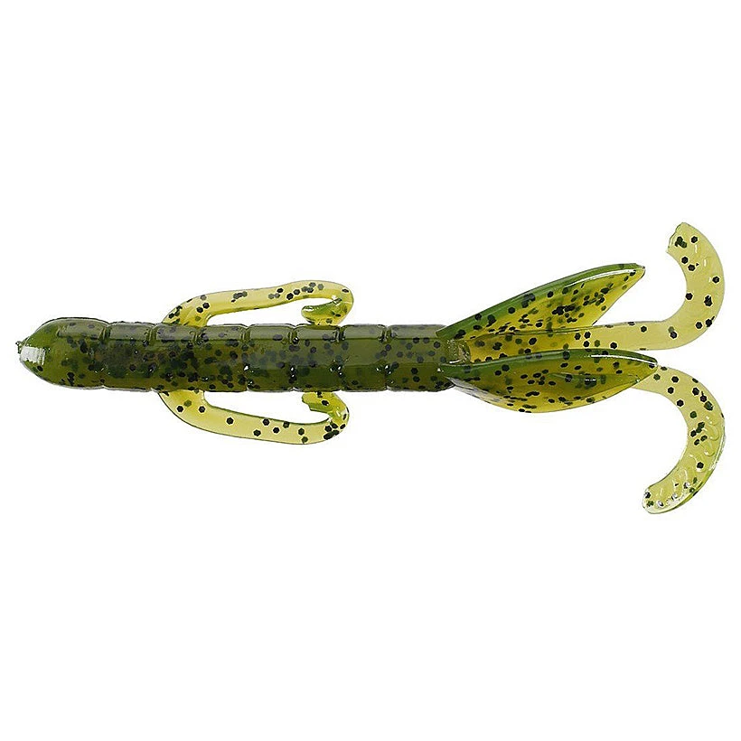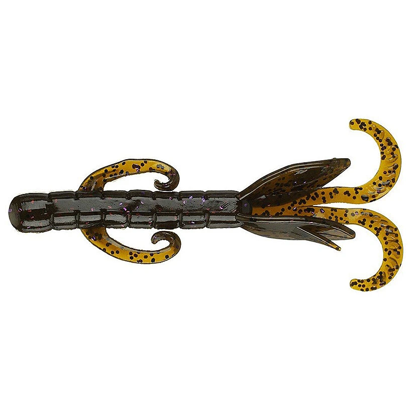 Designed by one of the top professional angler in the world, Jason Christie, this creature bait has all of the features anglers want in a bait for flipping, pitching and casting on a Carolina or Texas rig. Multiple appendages add tremendous water displacement. The top swimming arms are attached at top and bottom, but can easily be pulled loose at the bottom for more swimming action. The big flappers push tremendous water when combined with the double curltails.